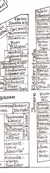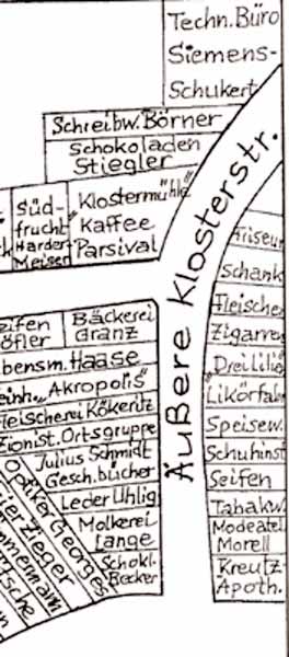 ![]() Läden und Geschäfte der Äußeren Klosterstraße 1940 - Quelle: Dr. Gottfried Ittner |